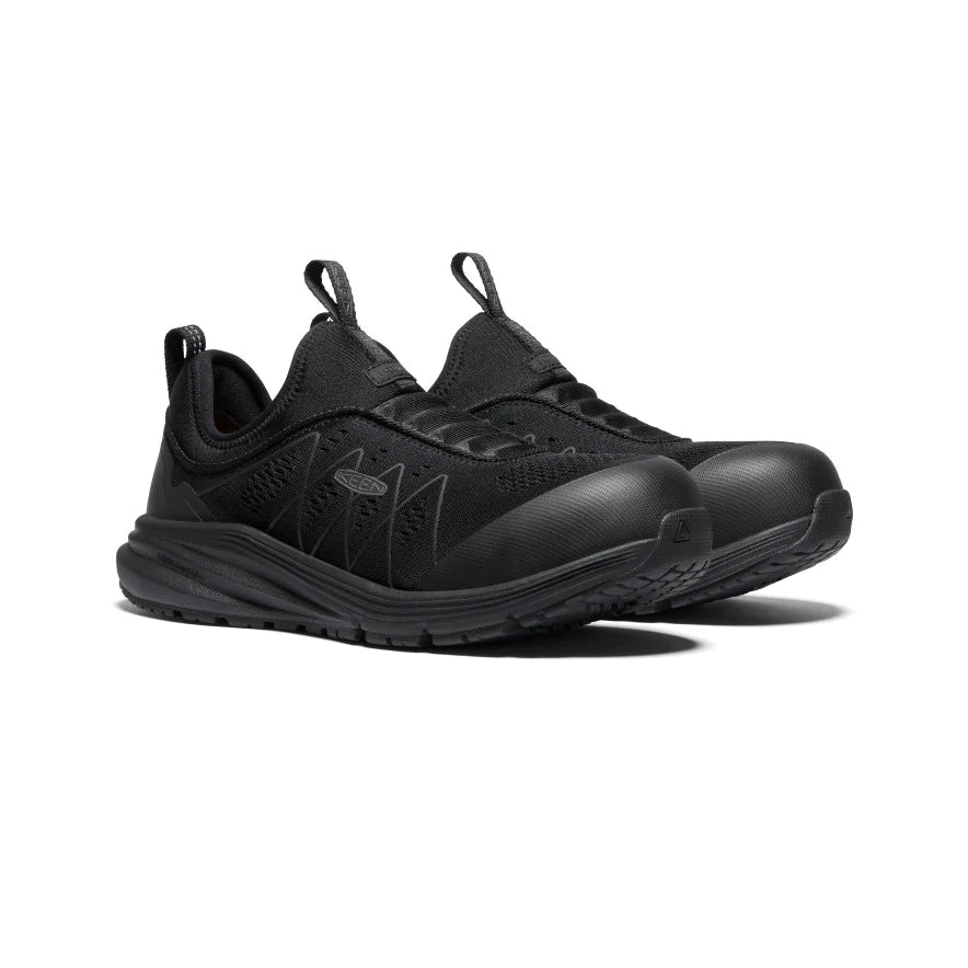 Designed for a woman’s foot and built with an energy-returning KEEN.ReGEN cushioning midsole, ESD-rated outsole, easy-on/easy-off laceless design, breathable mesh upper, and lightweight carbon-fiber toes, this work sneaker helps protect what you're working on while also accelerating work/life transitions.