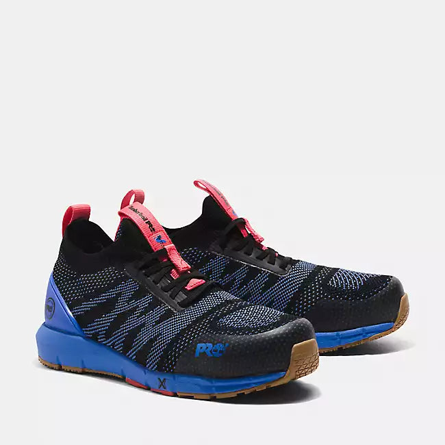 They may resemble your favorite slip-on athletic shoes, but our women's Radius work sneakers are built on a women's specific last to take on the toughest job sites and help keep your feet comfortable and protected. Utilizing Timberland PRO® FLEX technology, durable stretch fabrics are incorporated with rubber outsoles that have anatomically positioned flex grooves so you get full range of motion without resistance. Their metal- and mutilation-free, washable knit uppers are breathable and have abrasion-resistant reinforcements for durability. We added composite safety toes, electrical hazard protection, our Anti-Fatigue Technology footbeds for shock absorption and energy return, lightweight Hover Spring™ foam midsoles for industry-leading comfort, durability, and flexibility, and breathable, moisture-wicking linings made of ReBOTL™ fabric containing at least 50% recycled plastic with an antimicrobial treatment for odor control